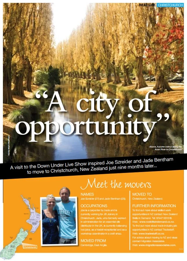 After attending the Down Under Live Show, Joe busied himself with getting some key documents through to Joel Gabites – his CV, some written references and evidence of his qualifications in preparation for an interview with a trade agency that NZ Skills in Demand works closely with. Migration Associates’ immigration advisor Rachael Howes helped Jade and Joe put a strategy in place for their working holiday visa and residency visa.